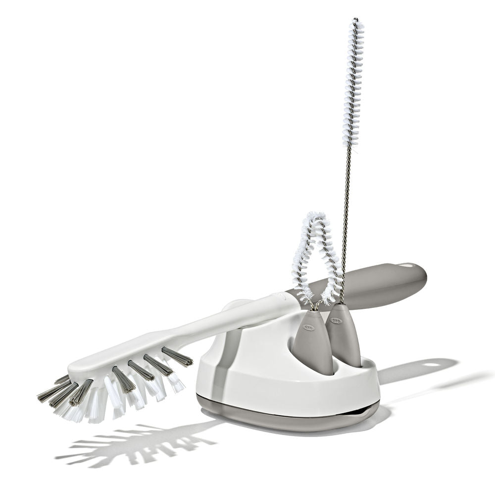 Everything you need to clean every nook and cranny. Cleaning baby bottles and sippy cups doesn’t have to be a chore with the OXO Tot Bottle & Straw Cup Cleaning Set designed to clean those hard-to-reach spots, this set of 3 brushes will get in those tricky corners, slim straws and sippy spouts