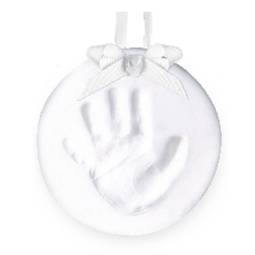 The multiple ribbons included makes this the perfect keepsake for baby boy or baby girl! Best of all, the clay requires no mixing or baking! Simply knead the clay and roll it out on a piece of foil (not included). Press baby’s hand or foot in the clay gently but hard enough to create an impression. If you make a mistake - no problem! You can redo it as many times as you need until you get the perfect impression. Once finished making the print, use the shaping ring to create a circle around your baby’s print and remove the excess clay. Then use the pin to create a hole in your keepsake for the ribbon to go once dry. Let dry for 1-2 days. Once the clay is completely dry, tie the ribbon through the keepsake, choosing the best color for your home or nursery. Pearhead’s adorable babyprints keepsake is the perfect decoration for your home and the perfect keepsake to always cherish your little one’s piggies. Product dimensions: 5” W x 5” H x .75” D